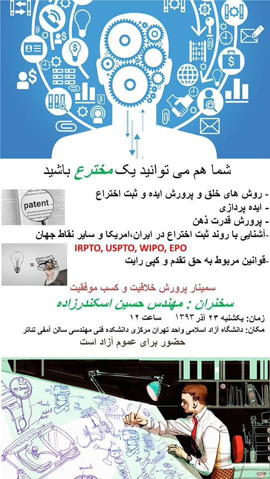 سمینار شما نیز می توانید یک مخترع شوید در سالن سمینار دانشکده فنی تهران مرکز برگزار شد