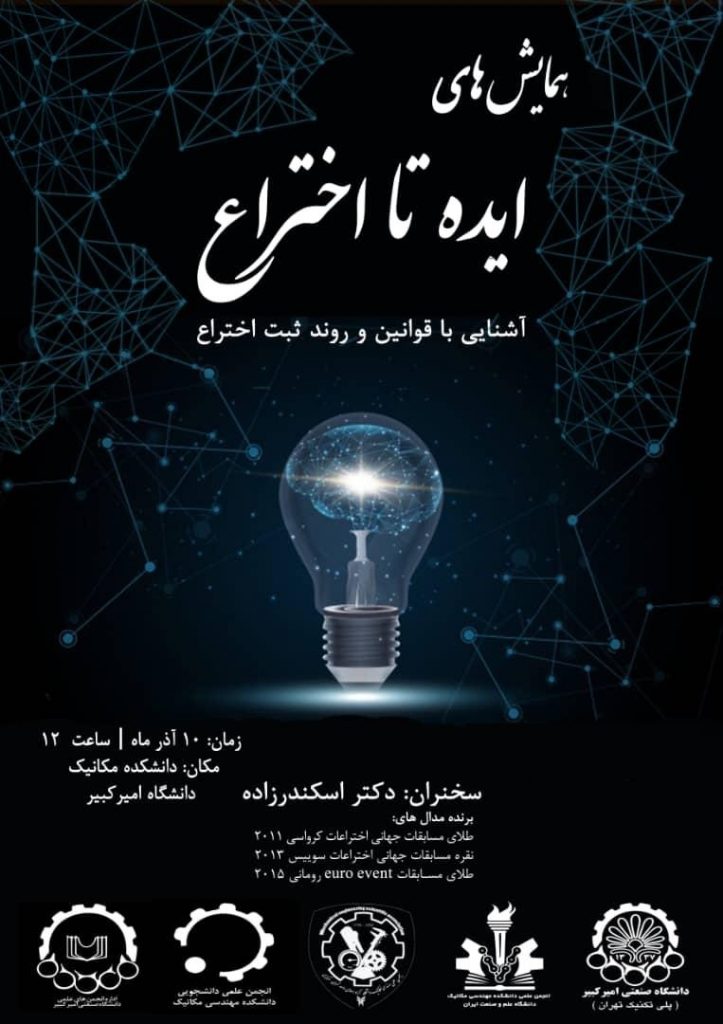 همایش ایده تا اختراع با سخنرانی دکتر حسین اسکندرزاده در تاریخ 98/09/10 در سالن فجر دانشگاه صنعتی امیرکبیر برگزار شد. در این همایش راهکارهای کسب ثروت از طریق ایده پردازی و خلاقیت و همچنین روش های ثبت اختراع و حفاظت از ایده مورد بحث و گفتگو قرار گرفت.