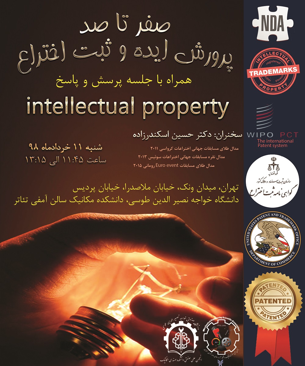 همایش صفر تا صد پرورش ایده و ثبت اختراع با رویکرد آموزش نحوه ثبت انواع مالکیت های معنوی از جمله اختراع و طرح های صنعتی به سخنرانی دکتر حسین اسکندرزاده در روز شنبه 11 خرداد ماه 1398 در دانشکده مهندسی مکانیک دانشگاه خواجه نصیر طوسی برگزار شد.